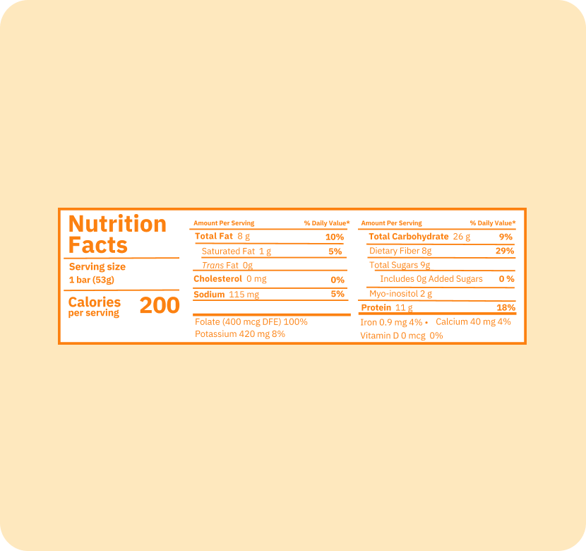 Organic Peanuts, Organic Dates, Organic Egg Whites, Organic Tapioca Fiber, Organic Myo-inositol, Organic Quinoa, Organic Glycerine, Organic Spinach, Organic Carrots, Organic Sweet Potato, Organic Vanilla Extract, Organic Maca Root, Folic Acid